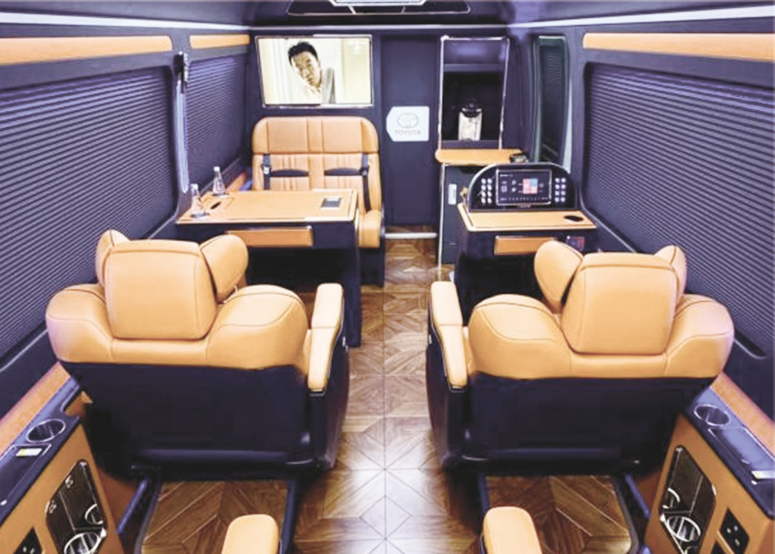 商務(wù)系統(tǒng):車內(nèi)可定制多功能豪華座椅、豪華辦公桌以及秘書桌、冰箱柜、酒柜、床、衛(wèi)生間等。