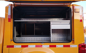 2. 廂體兩側采用消防卷簾門或上掀門,后部為對開門或上掀門結構,取放設備快捷、方便。