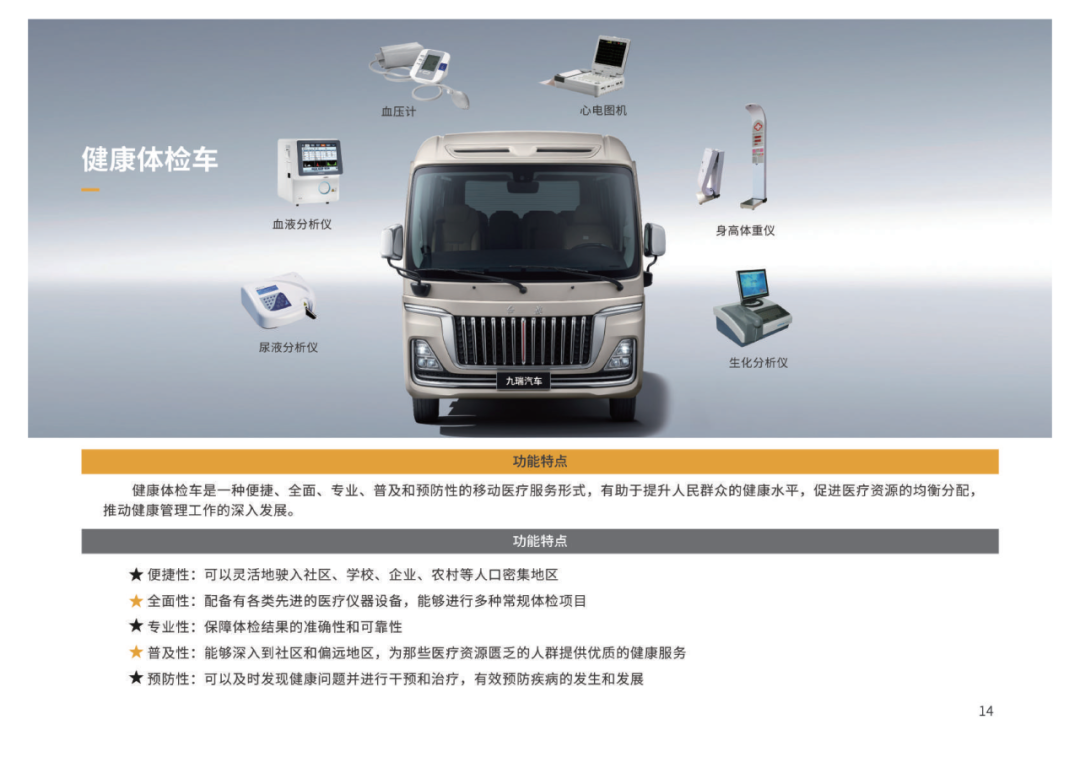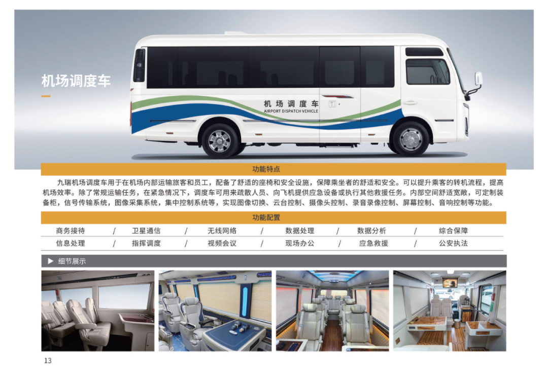 一汽紅旗與九瑞汽車強(qiáng)強(qiáng)聯(lián)合、雙向賦能,共同打造汽車生產(chǎn)廠商與應(yīng)急裝備制造企業(yè)優(yōu)勢(shì)互補(bǔ)、聯(lián)合創(chuàng)新的合作典范。 ·多功能指揮車 ·消防指揮車 ·移動(dòng)衛(wèi)星基站車 ·衛(wèi)星通信車 ·移動(dòng)應(yīng)急管理平臺(tái) ·公安指揮車 ·無人機(jī)巡檢車 ·氣象監(jiān)測(cè)車 ·無人機(jī)反制車 ·危險(xiǎn)氣體檢測(cè)車 ·礦山綜合救援車 ·商務(wù)車 ·健康體檢車 ·宿營(yíng)車 ·機(jī)場(chǎng)調(diào)度車 ·醫(yī)療車