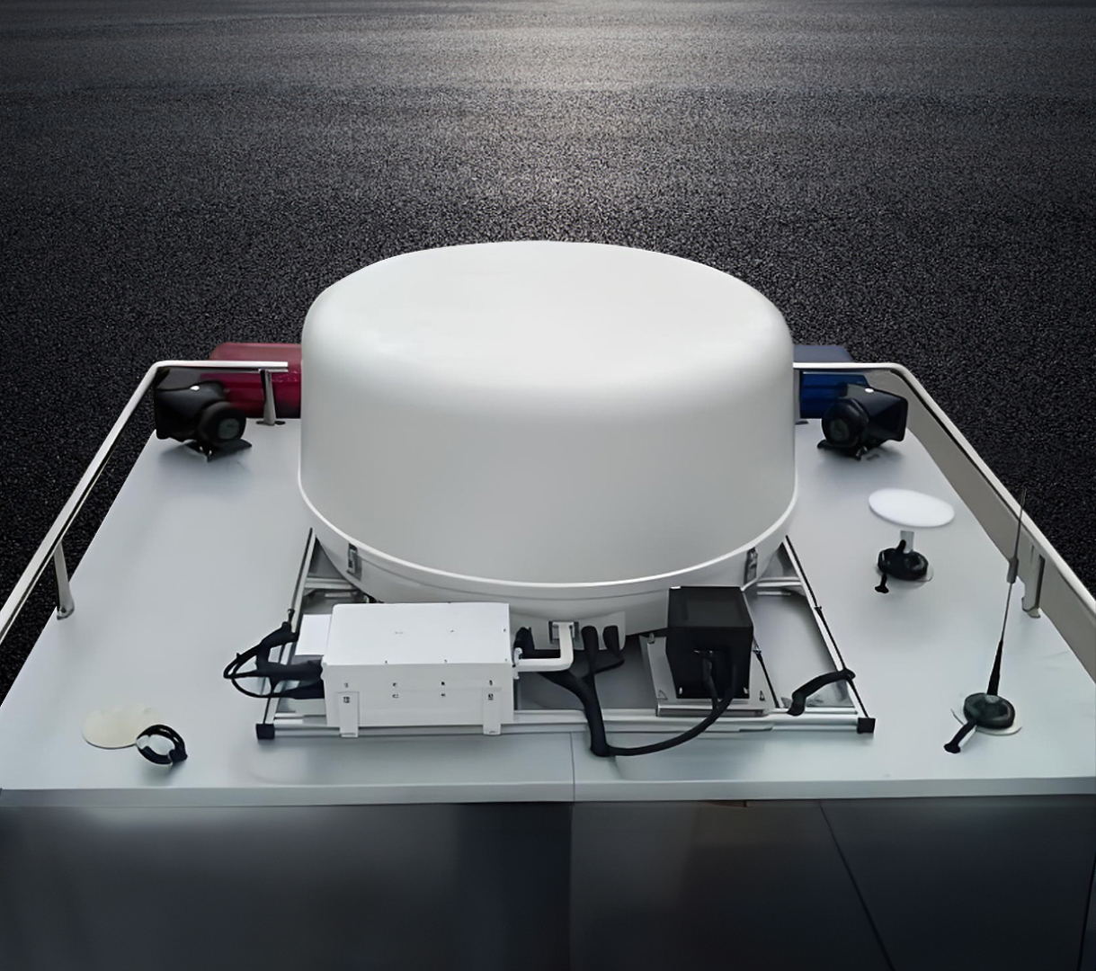 本車功能系統(tǒng),可通過各種通信手段,在災(zāi)害現(xiàn)場建立臨時指揮調(diào)度網(wǎng)絡(luò),滿足便攜式會議終端站的網(wǎng)絡(luò)需求,實現(xiàn)在任意時間、地點與部局指揮中心、總隊指揮中心音視頻的互聯(lián)互通;利用微波圖傳等,將采集到的圖像傳輸至指揮車,通過衛(wèi)星通信系統(tǒng)上傳至總隊指揮中心、部局指揮中心;能通過衛(wèi)星電話與各級指揮部進行語音通信;為現(xiàn)場指揮部提供音視頻、電源、照明等通信保障。