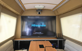 該車是在豐田考斯特客車的基礎(chǔ)上進行改裝的,底盤乘坐舒適,行駛平穩(wěn),空間寬敞,改裝后可以乘坐9人